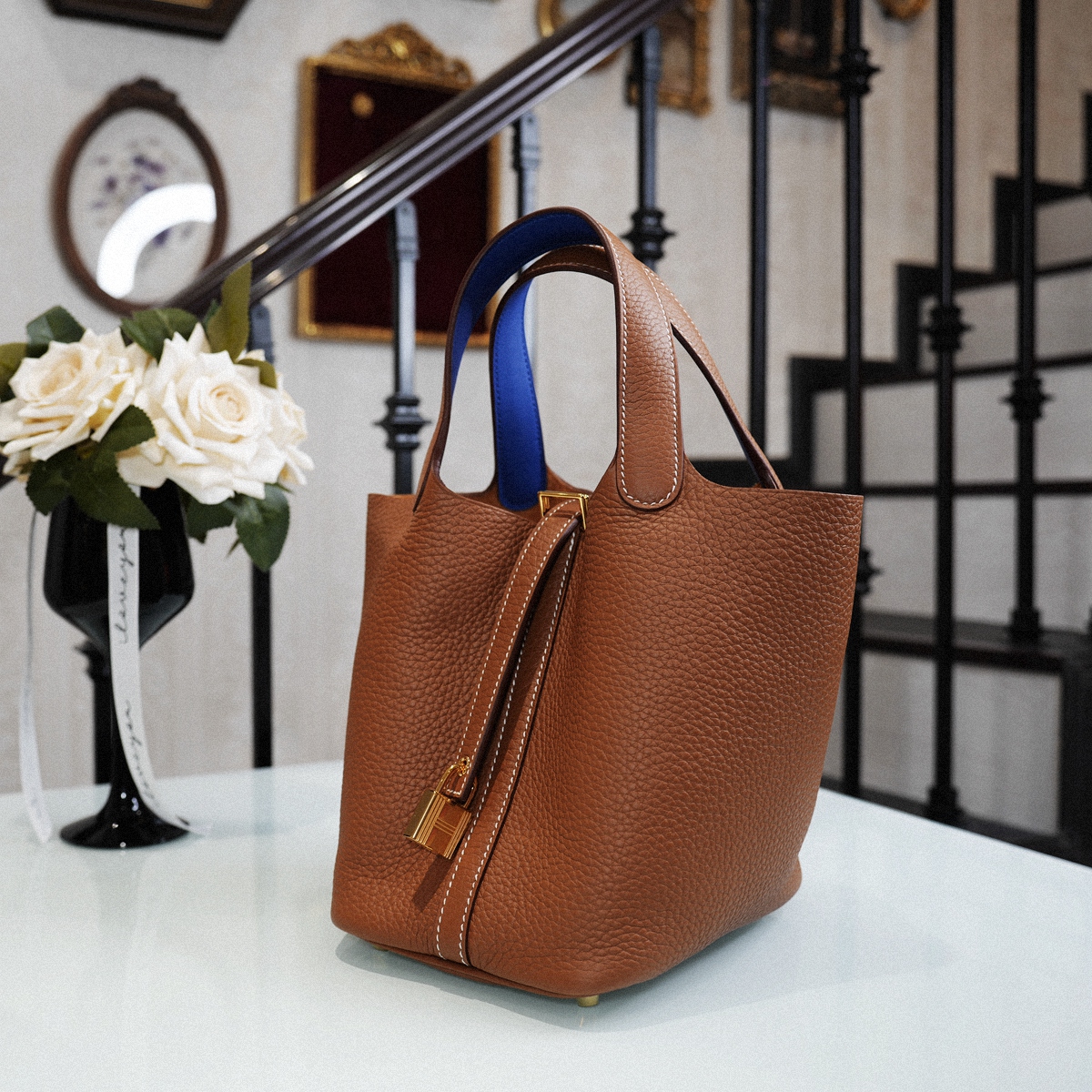 Picotin 18 cc37金棕金扣 手柄拼71色 法國藍
