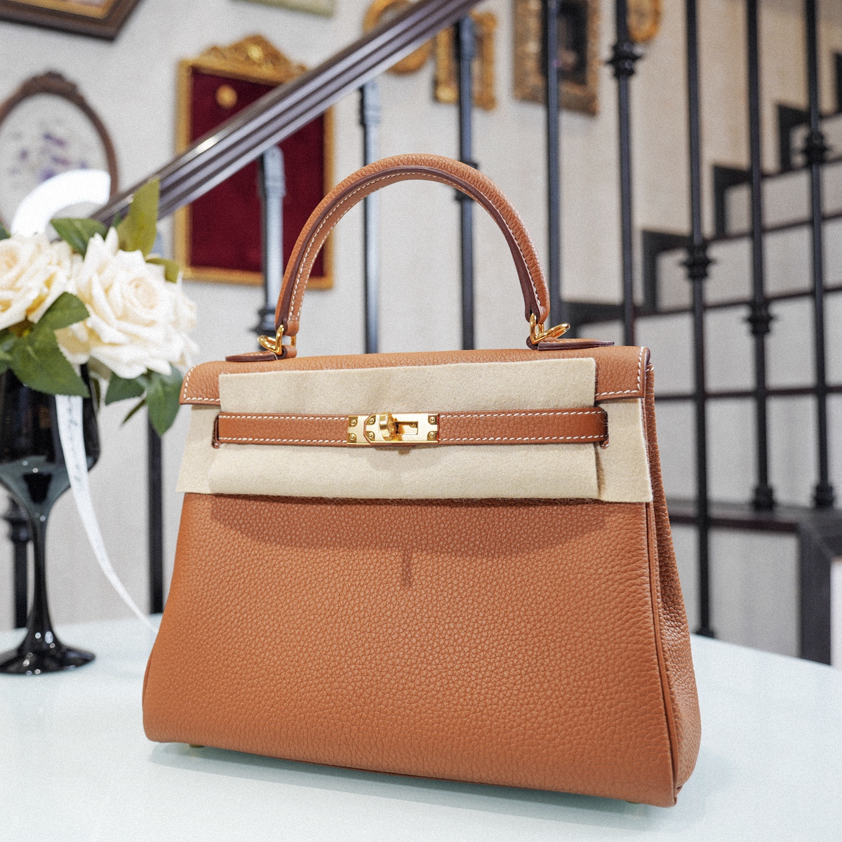 KELLY 25 CC37-金棕金扣TOGO皮