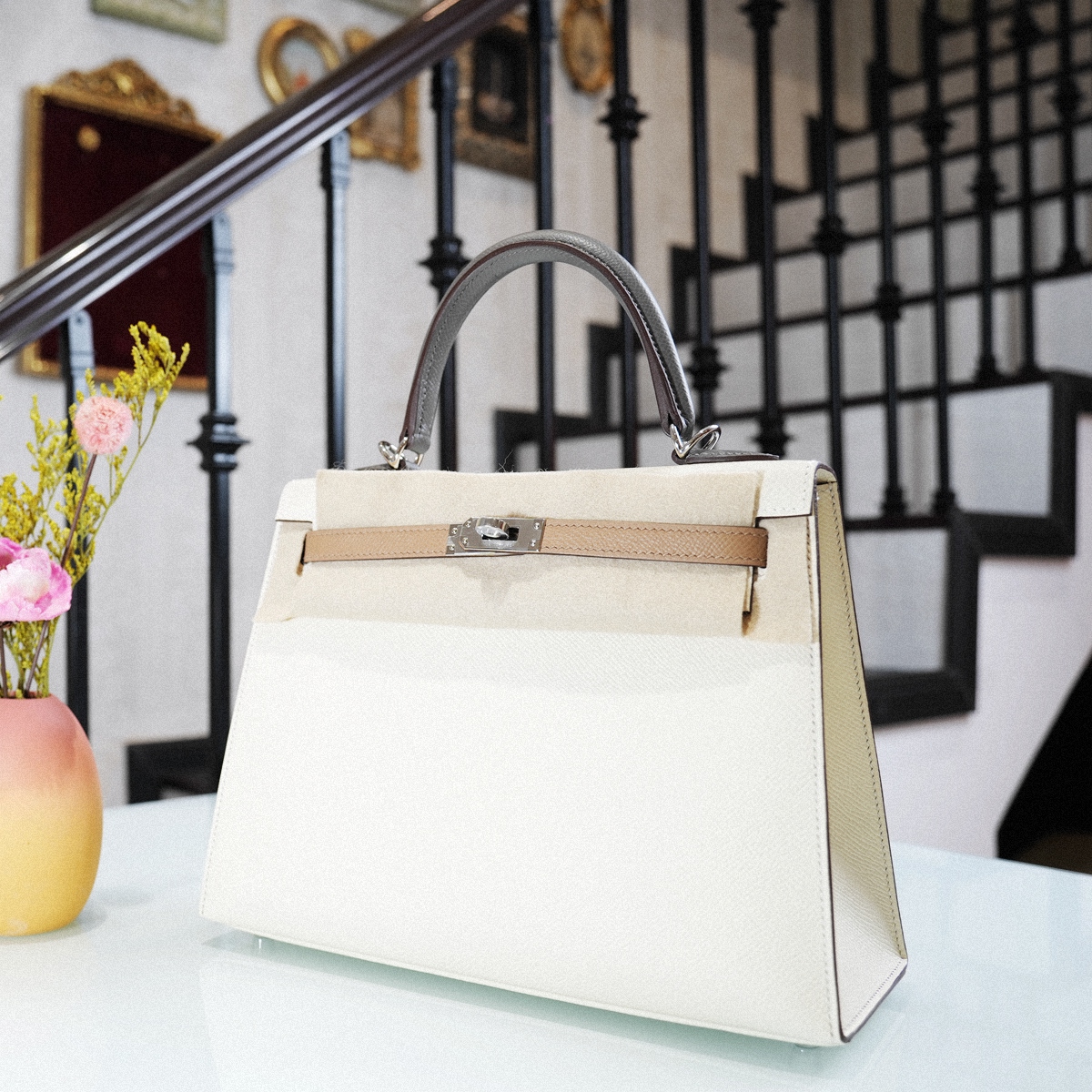 KELLY 25三拼色CCI2 0M 0L-奶油白拼奶茶拼積雨蕓灰