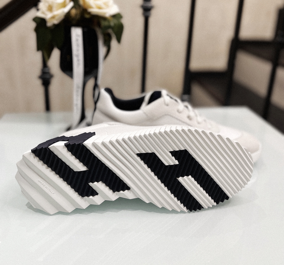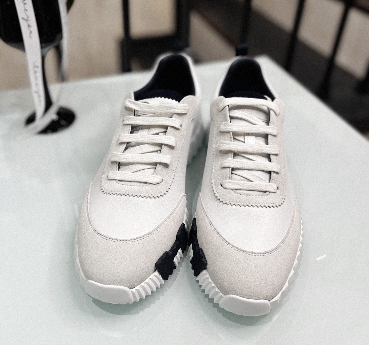 HERMES 牛皮舒适系带减震防滑耐磨透气低帮生活休闲鞋男款 白蓝黑 42.5號