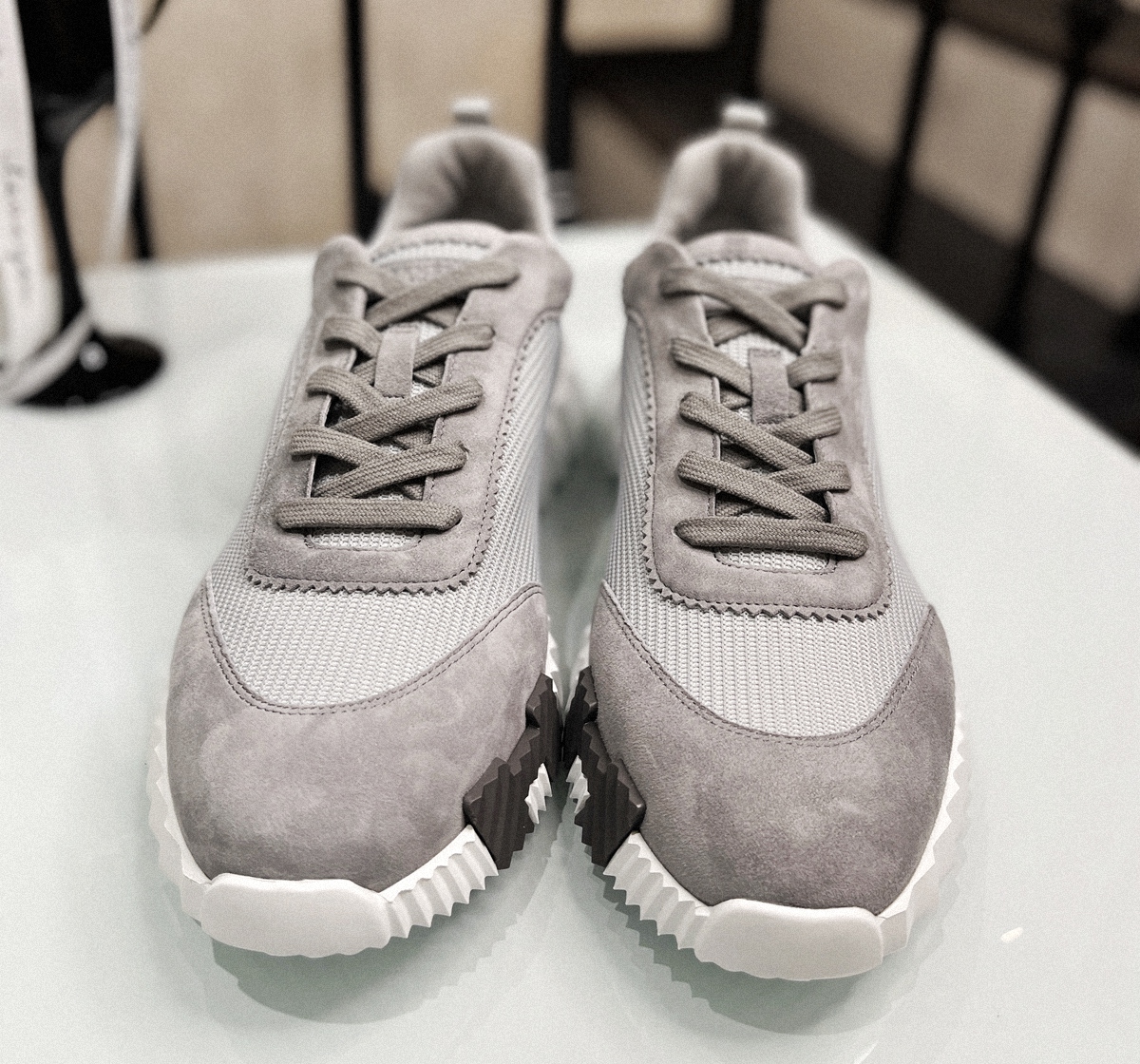 HERMES牛皮舒适系带减震防滑耐磨透气低帮生活休闲鞋男款 白蓝黑 42號