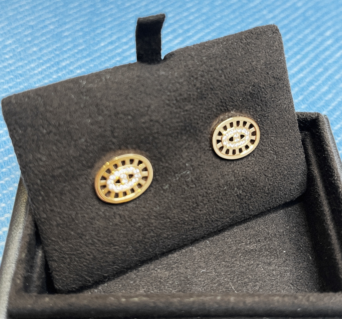 Hermes CHAINE D''ANCRE 豬鼻耳釘,18K玫瑰金 全原裝鑽石小號
