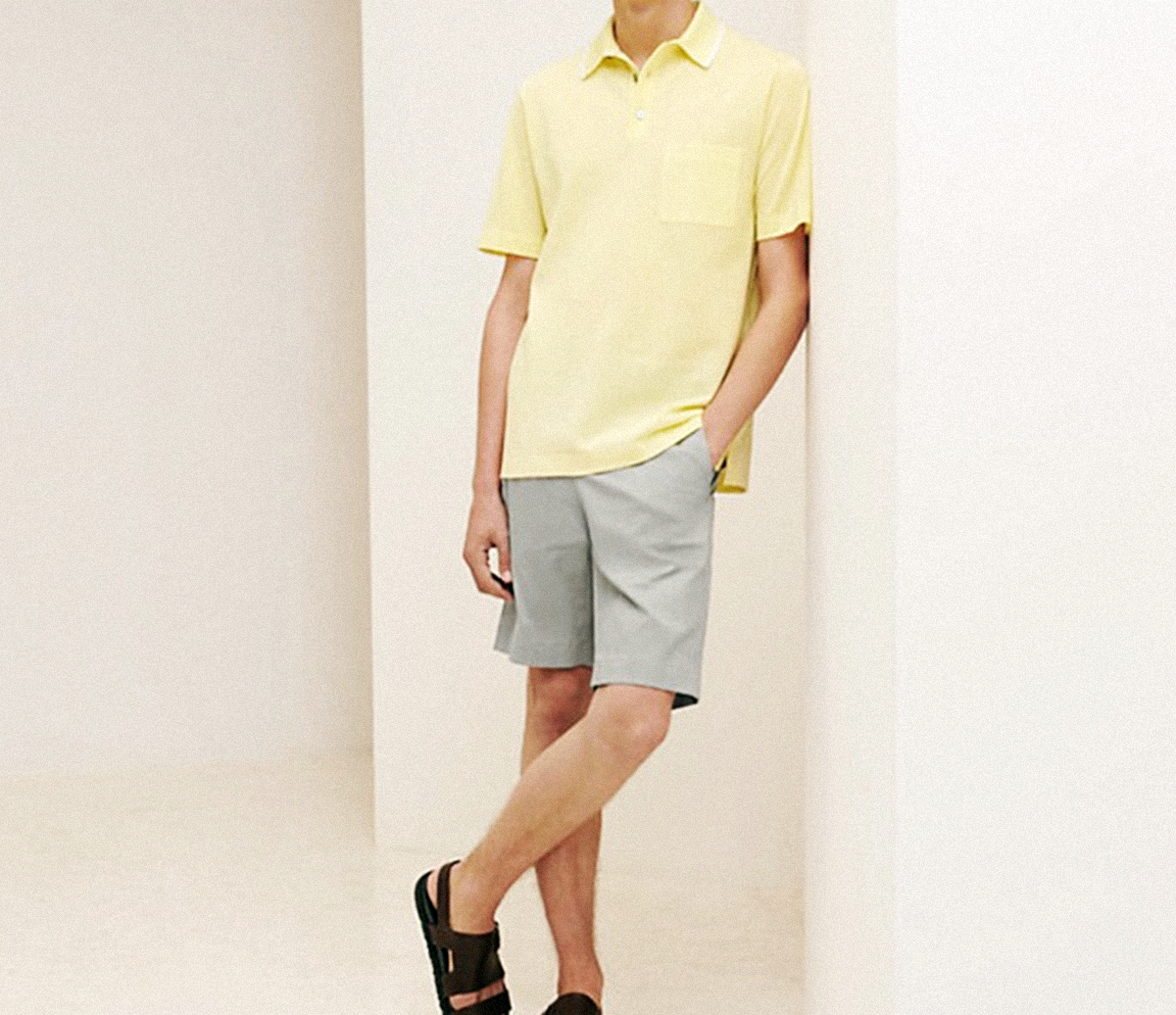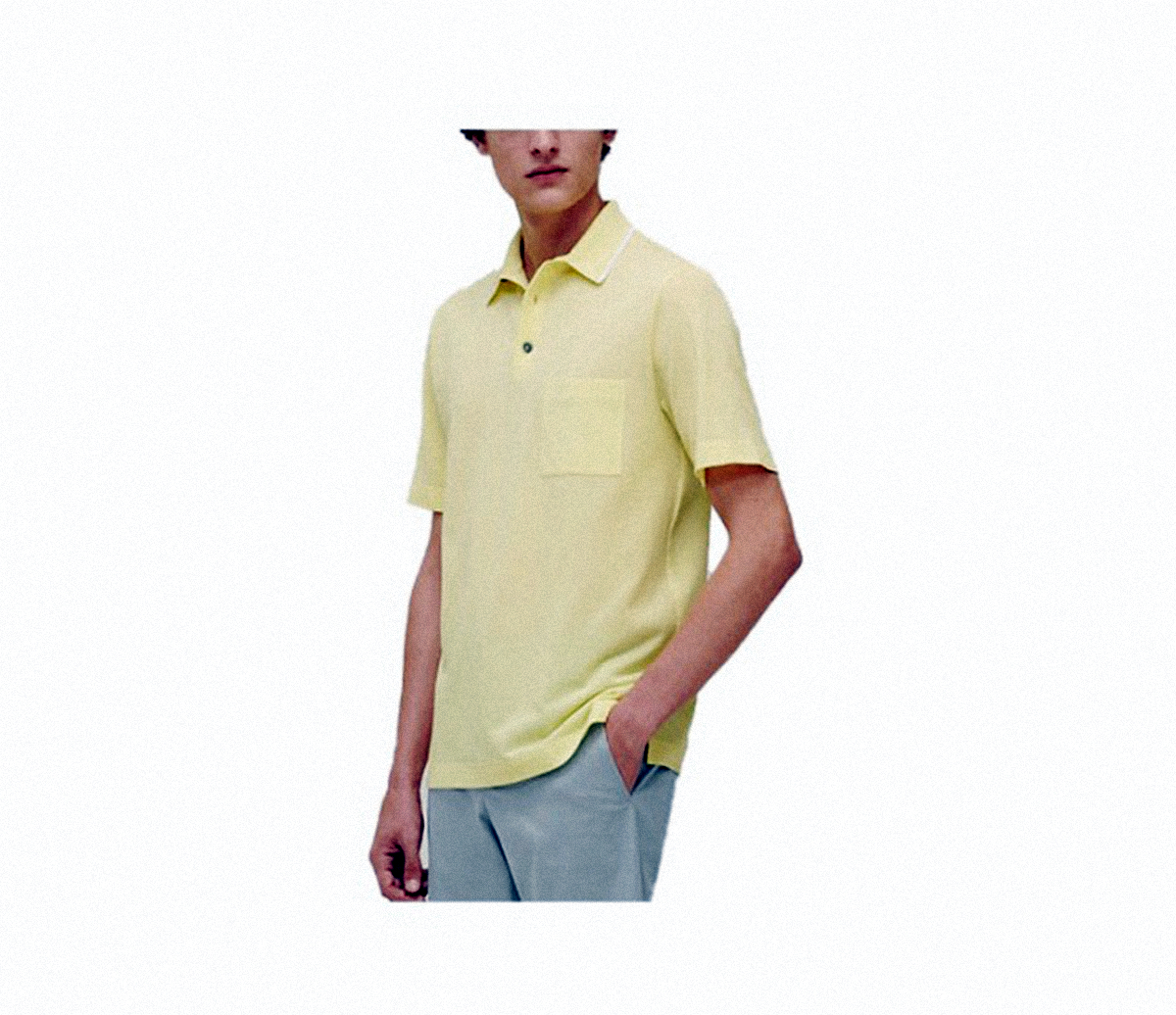 HERMES SS21 棉质口袋短袖Polo衫 男款 柠檬黄 L码