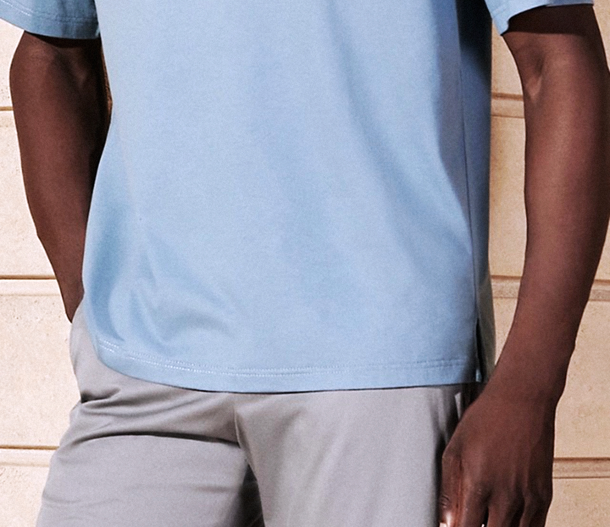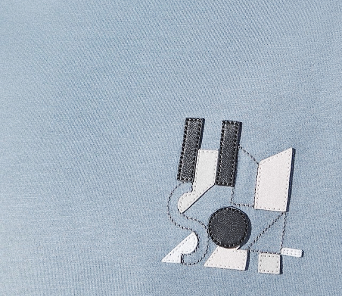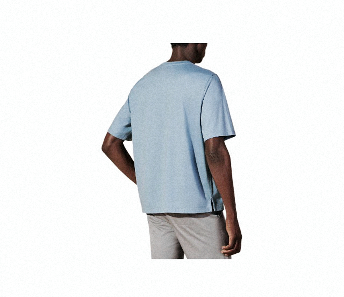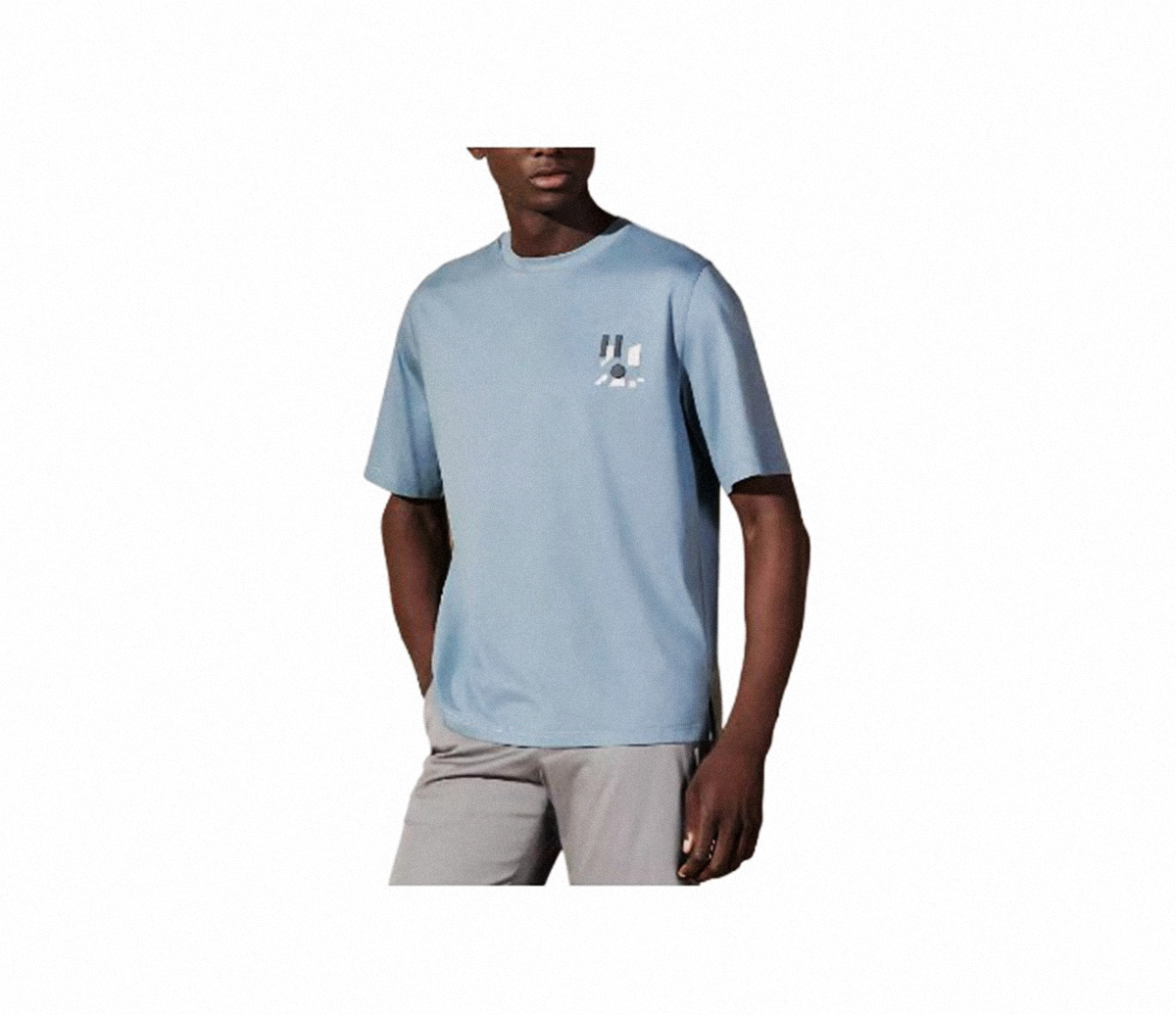 HERMES爱马仕 SS24 纯色皮革细节圆领直筒套头短袖T恤 男款 浅灰蓝色 L码