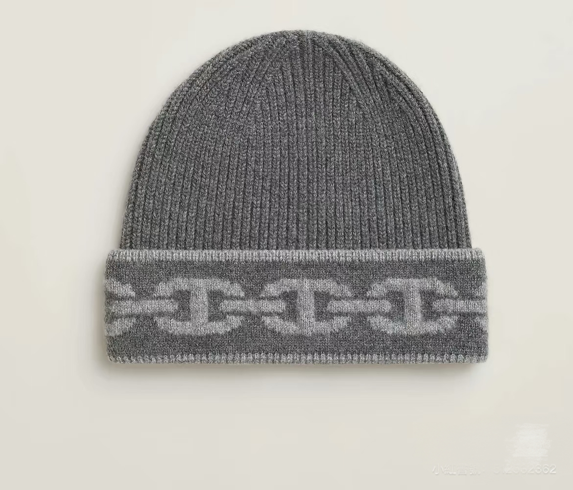 灰色猪鼻子毛线帽