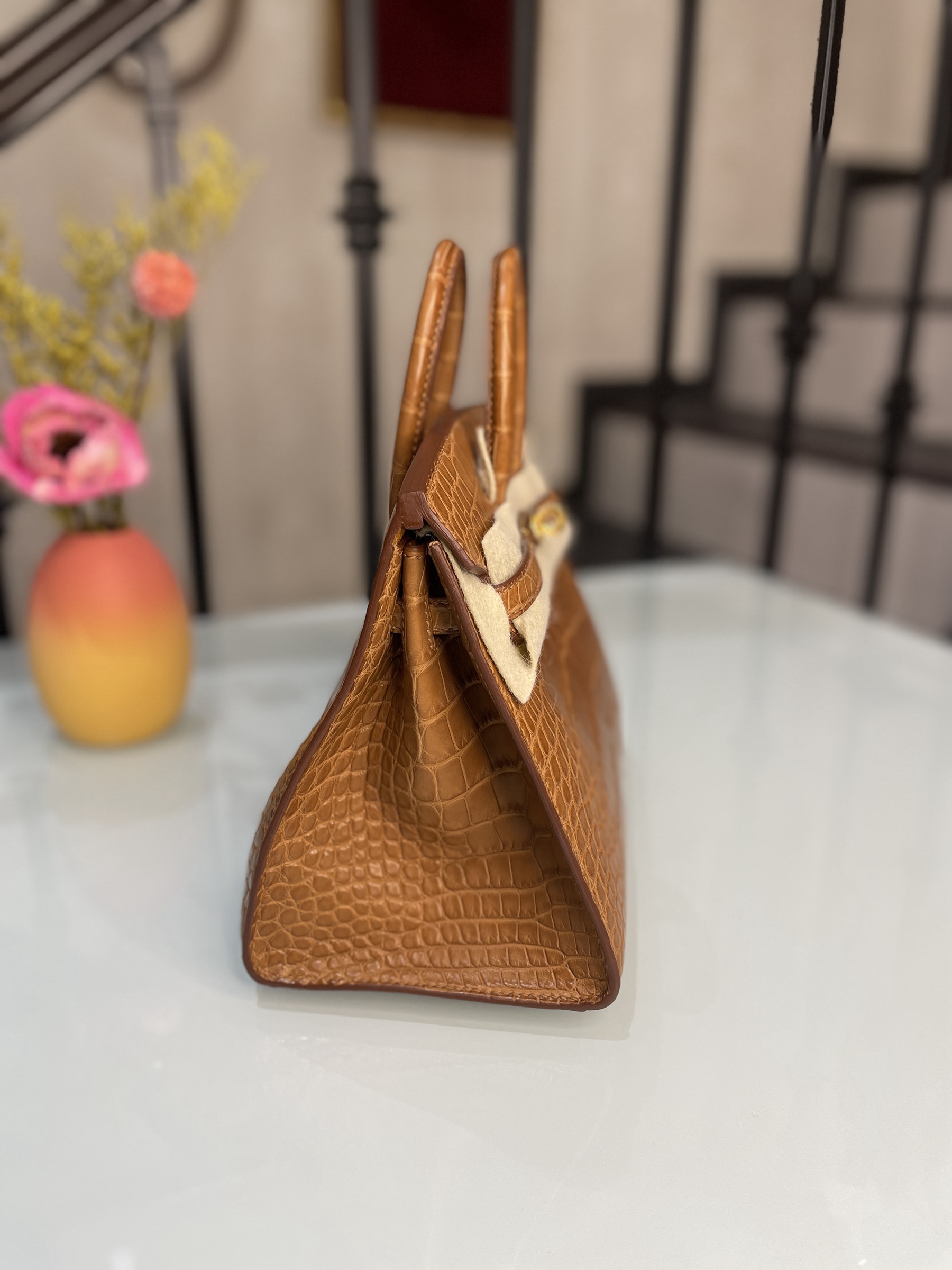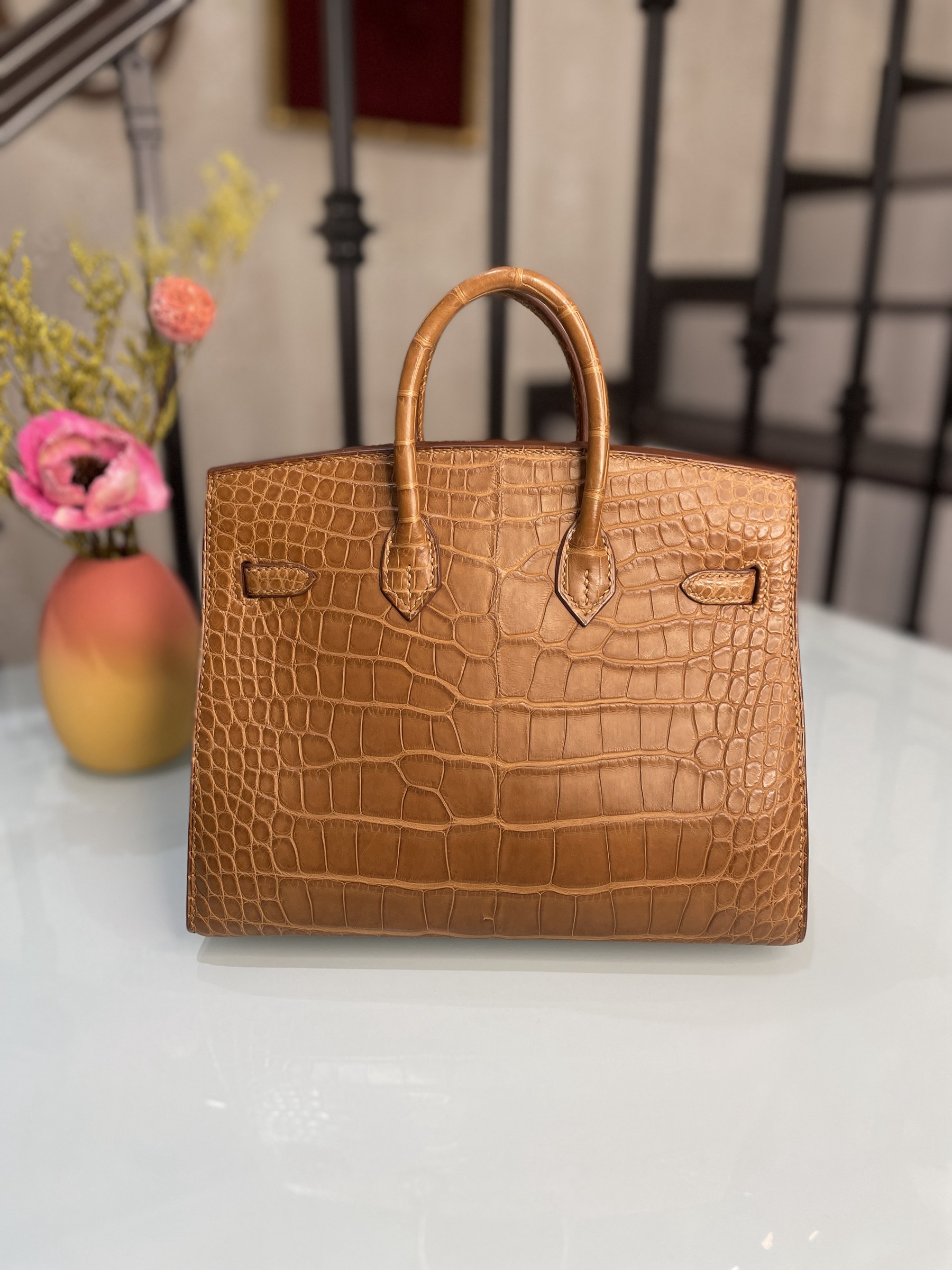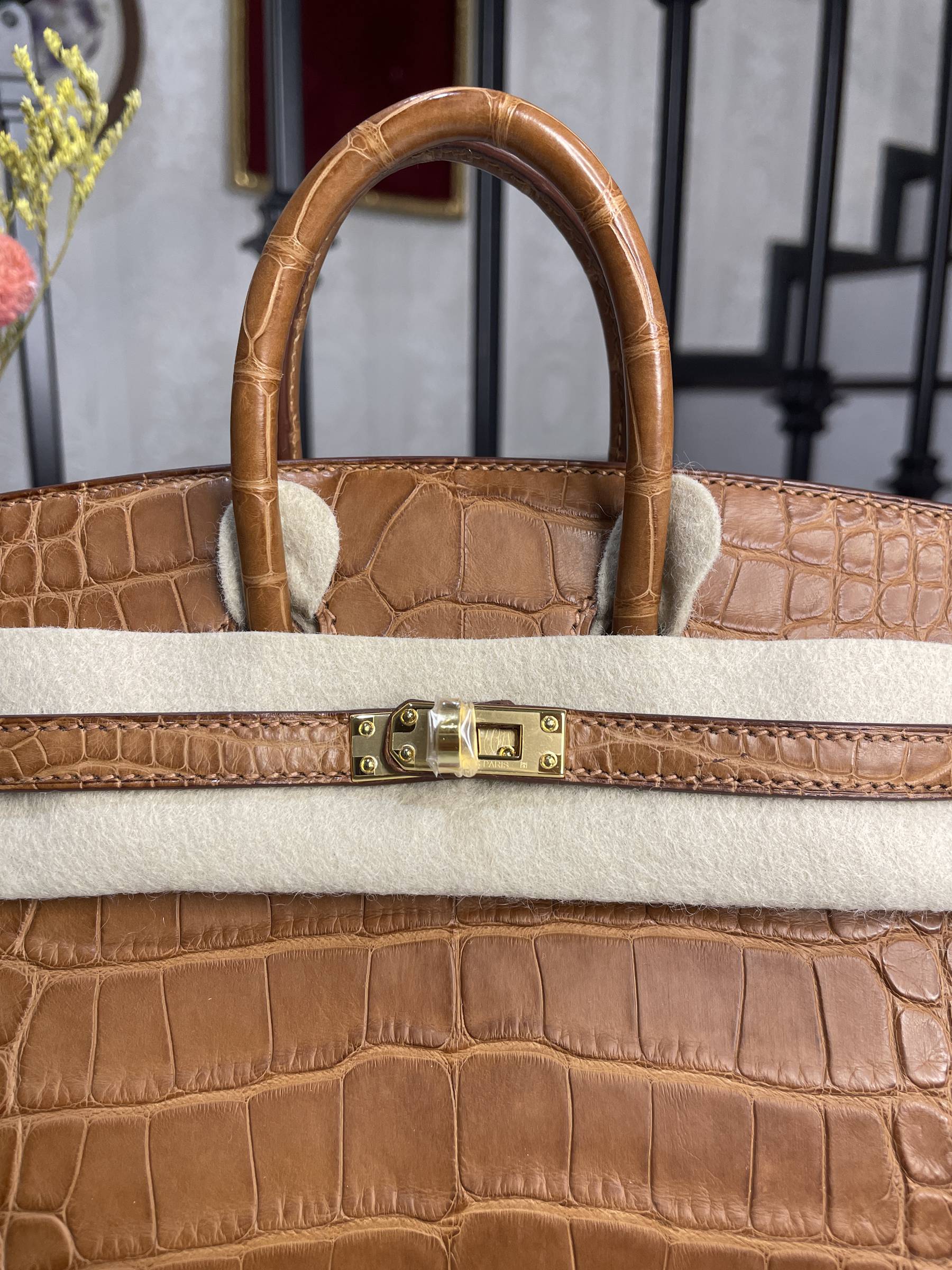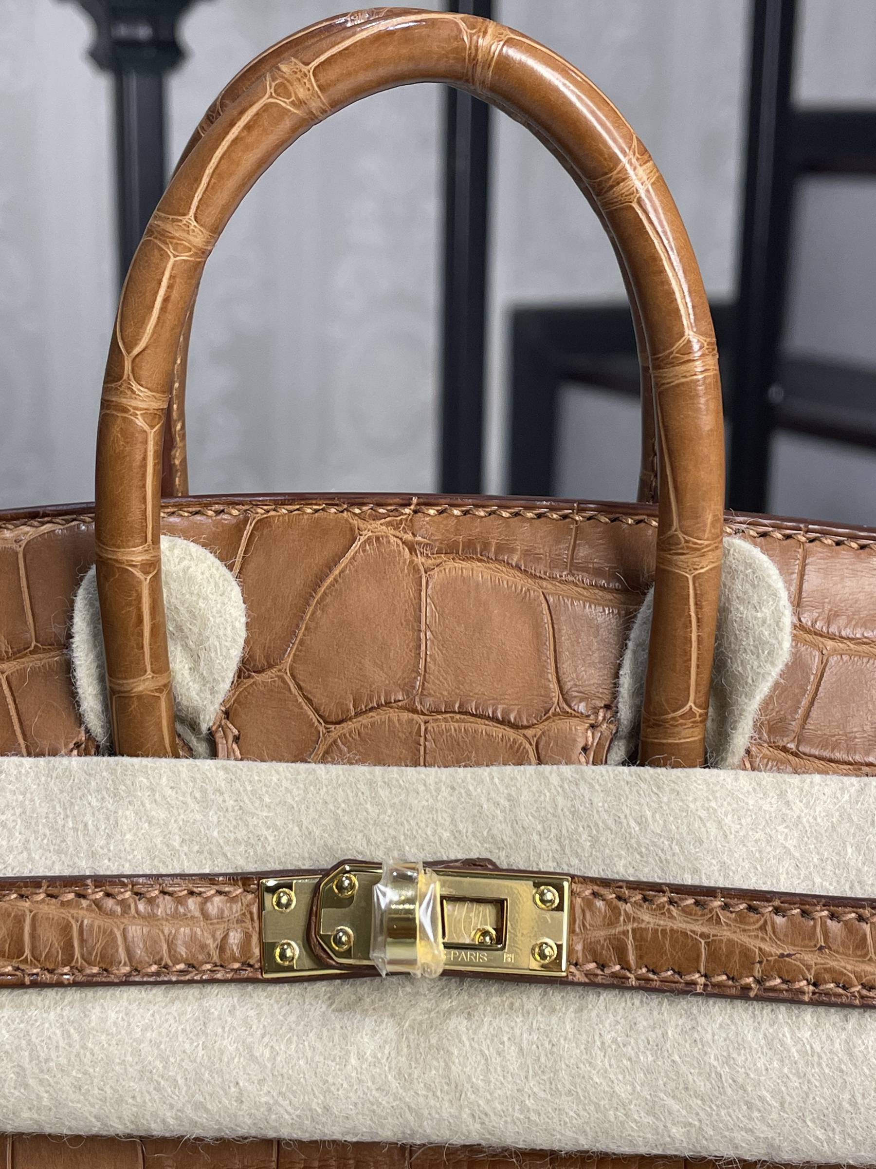 BIRKIN 20 CC37-金棕金扣霧面鱷魚方塊皮